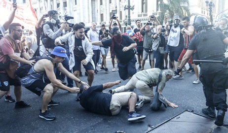 Uno de los hinchas de Chacarita entrevistado antes de que se desatara la represión explicó que su presencia y la de sus amigos allí tuvo que ver con que el reclamo de los jubilados “se merece acompañamiento, más allá de la casaca” del club al que uno pueda pertenecer.