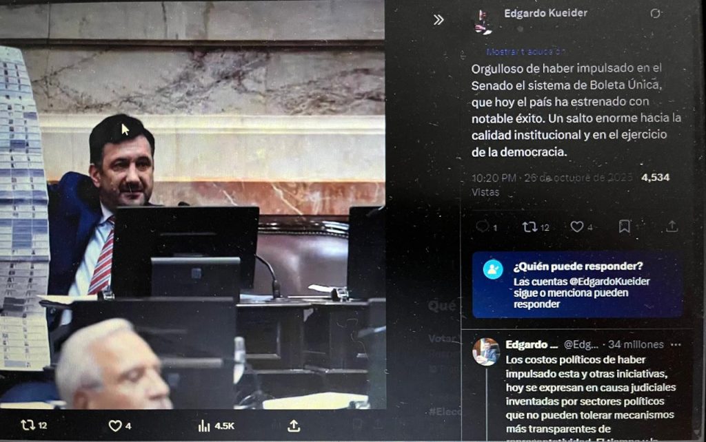 Hace apenas unos minutos, el ex senador Edgardo Kueider que se encuentra en Paraquay, posteó en su cuenta de X: