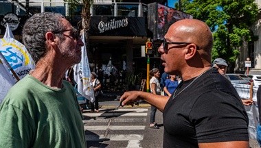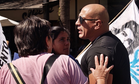 Como es habitual, la columna se dirigía por calle Urquiza en dirección norte-sur, cuando al llegar a calle 1ro. de mayo, un hombre “calvo” y musculoso, se acercó a los docentes y protestó por no poder avanzar y a los gritos comenzó a plantear sobre la libertad de transitar libremente por la calle.