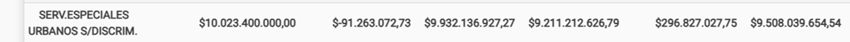 Servicios Especiales Urbanos S/DISCRIM.: $9.508.039.654,54