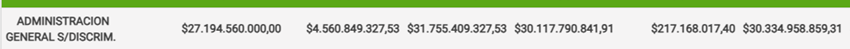 Administración General: la gran caja de pandora. El monto informado es que del total gastado $34.431.681.073,13, ejecutaron $30.334.958.859,31, como S/DISCRIM. Debería ser explicado con claridad por el intendente que estructuras administrativas absorbieron esos fondos. Qué parte responde a decisiones concretas de su rumbo marcado, dado que la magnitud del gasto sin discriminar es muy grande sin tener explicación.